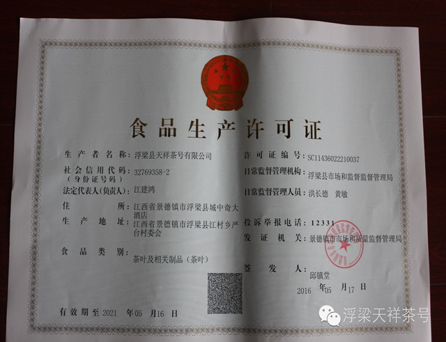 去冬今春,天祥茶號在保持傳統(tǒng)的基礎上,按照清潔化生產的要求,嚴抓廠房建設,并通過了上級有關部門檢查整改驗收,獲得了“食品生產許可證”。