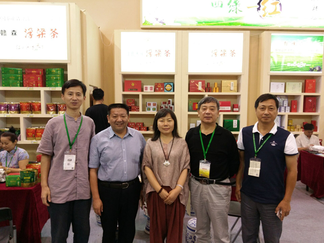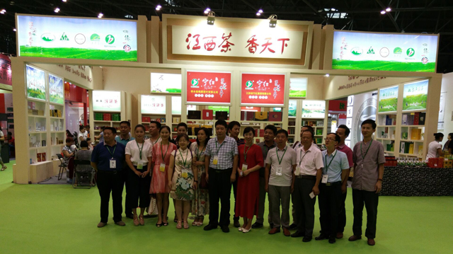 江西省農(nóng)業(yè)廳經(jīng)濟(jì)作物局領(lǐng)導(dǎo)與江西茶商在江西茶香天下展館合影留念