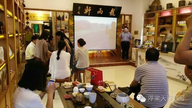 7月16日晚龍雨軒茶會邀請?zhí)牟枞恕⒚、名流、老總品鑒天祥茶號浮梁茶,大家對天祥茶號的紅茶、綠茶評價極高。