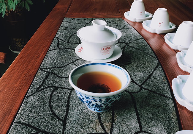 湯分到各人杯中,呈琥珀色,三人飲后相視點頭;第二泡飲后,三人神情嚴(yán)肅轉(zhuǎn)向輕松談話;第三泡下肚話音漸高,面呈悅色,并主動詢問這款茶的來龍去脈。我娓娓道來,他們沉浸在天祥茶號的故事中,沉浸在天祥古樹紅茶的香馨之中……